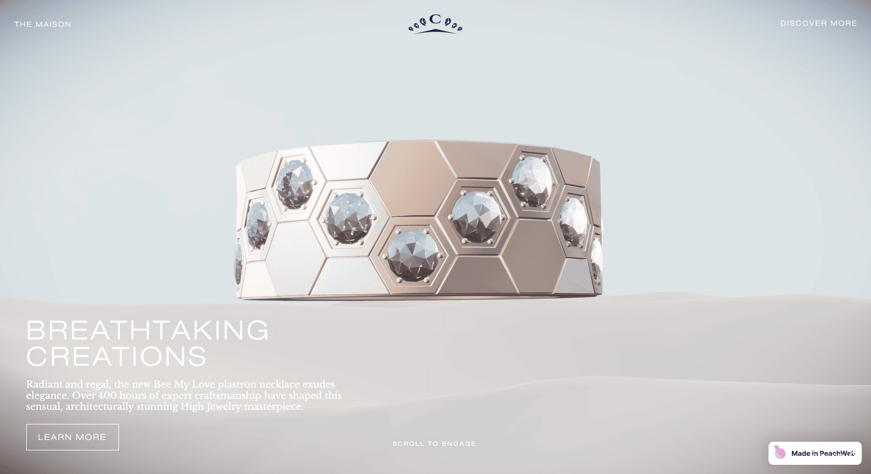 A WebGL-powered digital boutique for a luxury jewelry collection. The immersive concept study experience blends cinematic motion, spatial design, and refined typography to evoke the intimacy of a private showroom.